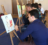 Wij komen met alle schildersmaterialen, schilders ezels, naaktmodel,